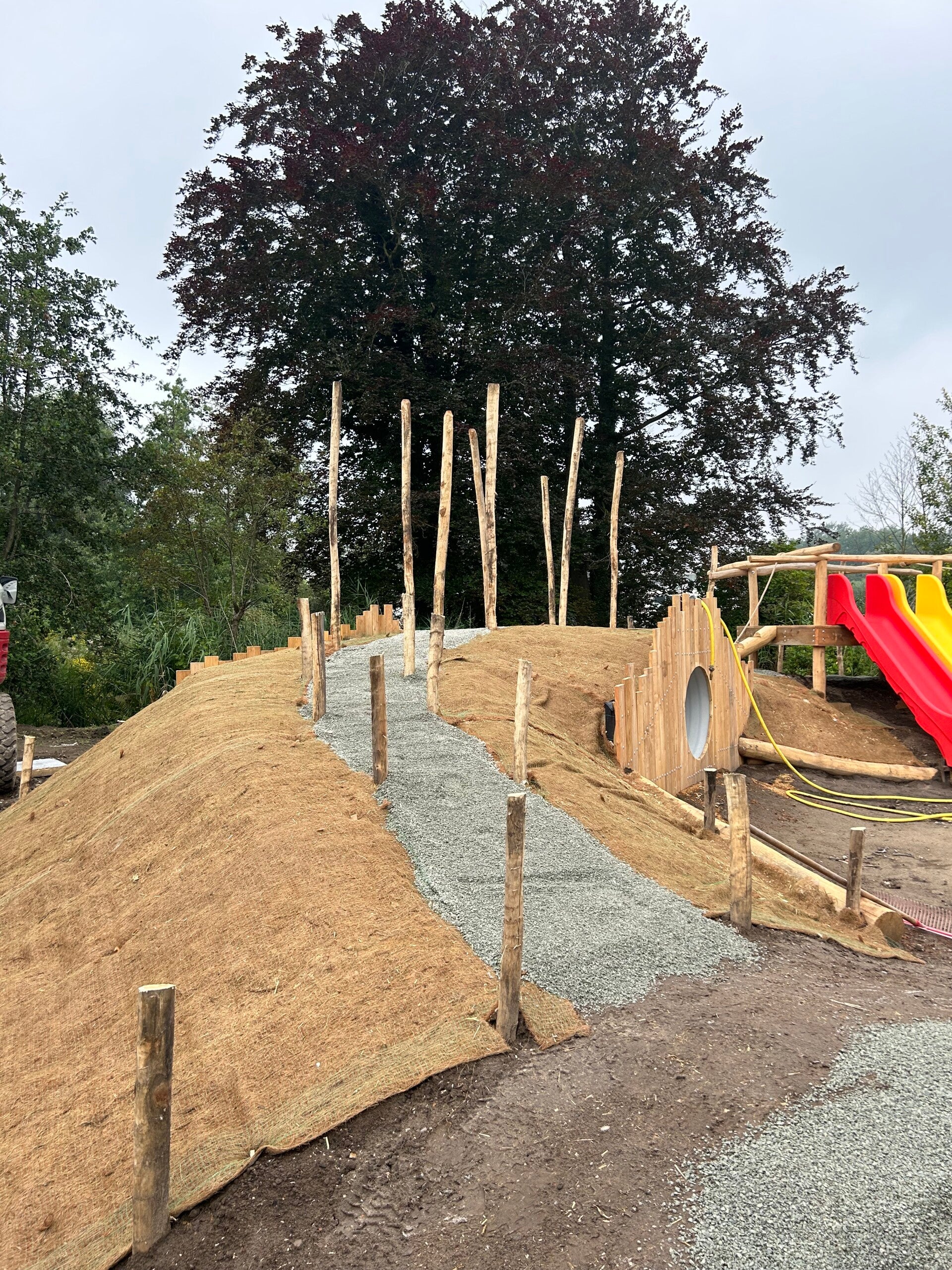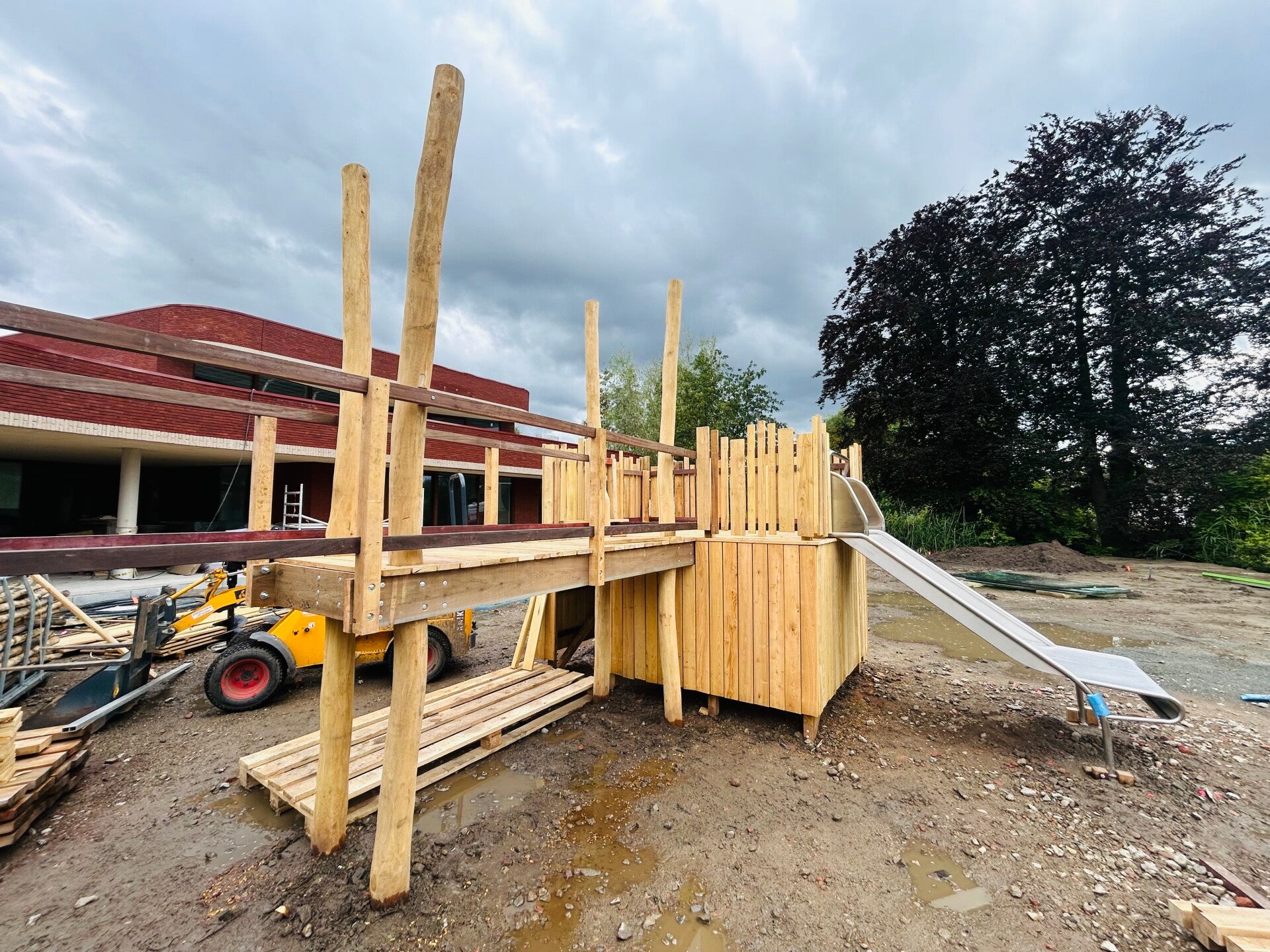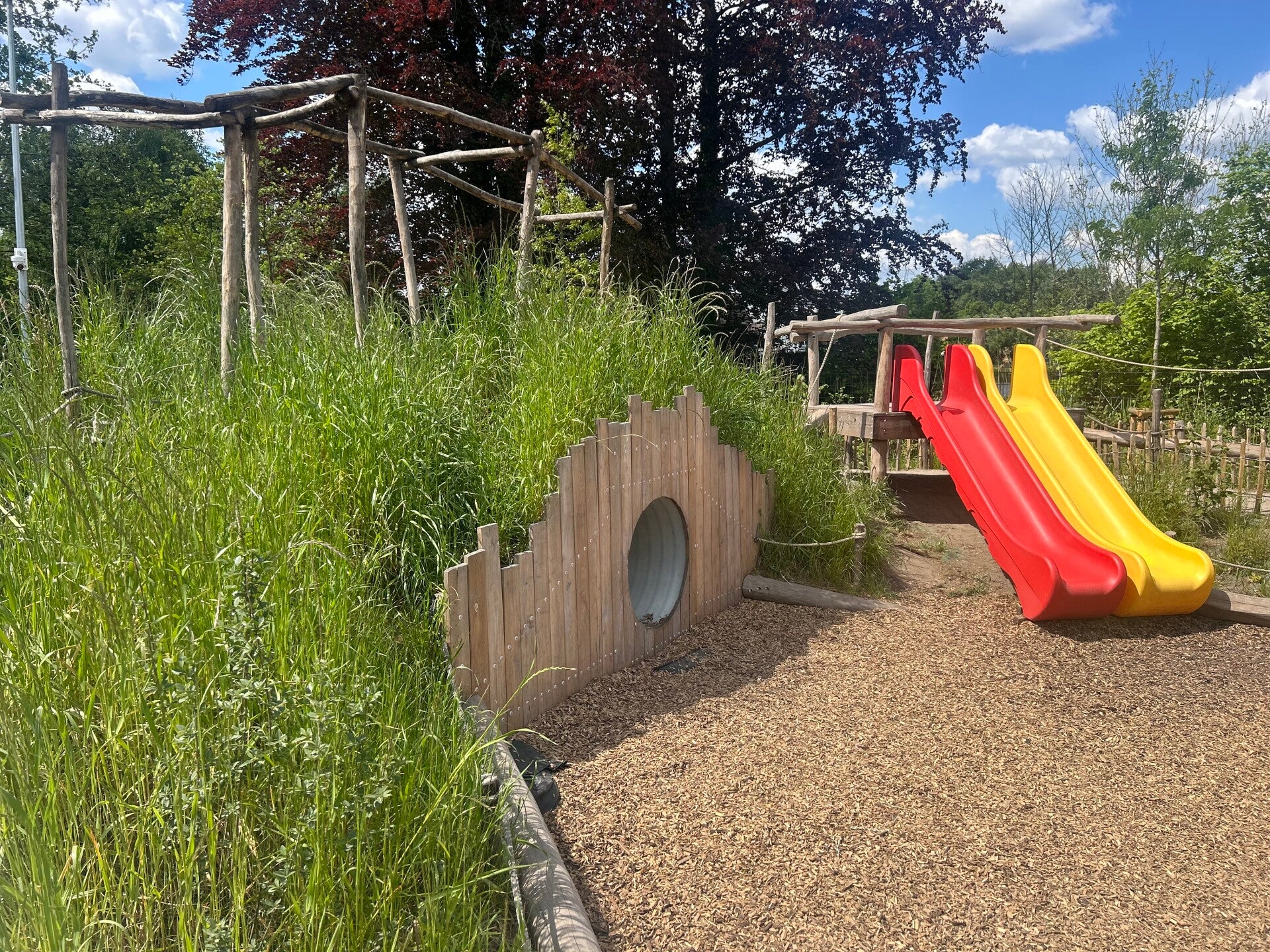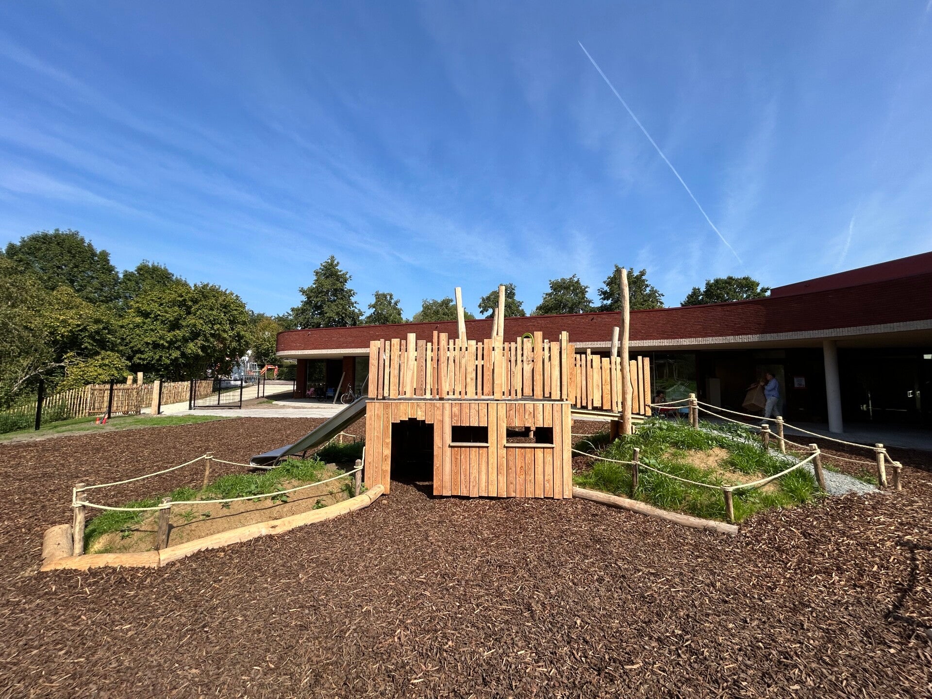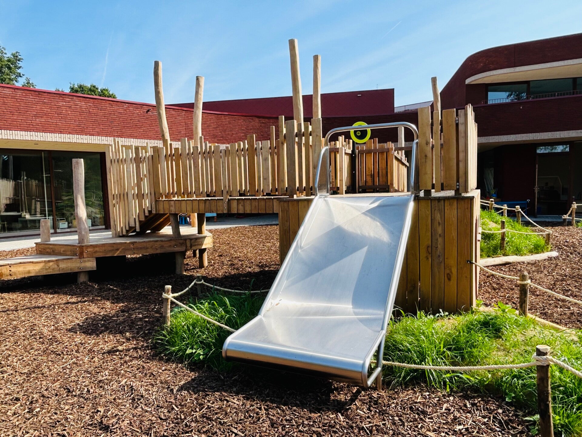 Bij de bouw van de nieuwe kleuterschool aan de Mannenwiel in Bornem kreeg het team van GROENE SPEELPLAATS de opdracht voor het ontwerp en de aanleg van een centrale speelheuvel. Het resultaat is een avontuurlijk parcours om te klauteren, te glijden en te kruipen met een speelhuisje, een uitkijkplatform, glijbanen en een praatpaal. Hier kunnen de jongste OLVP'ertjes naar hartenlust ravotten!