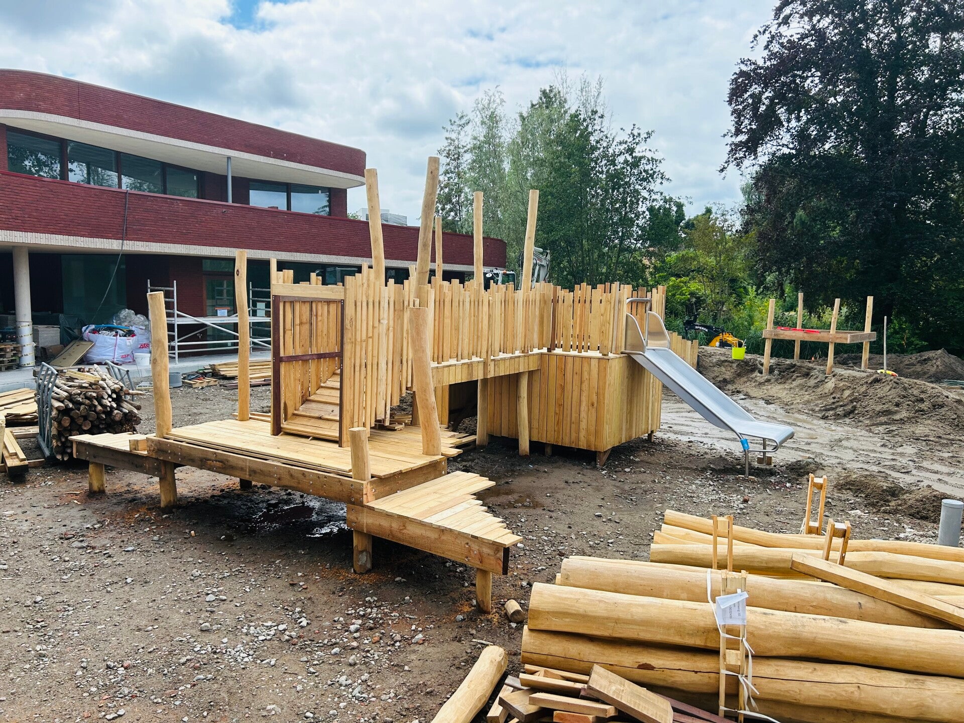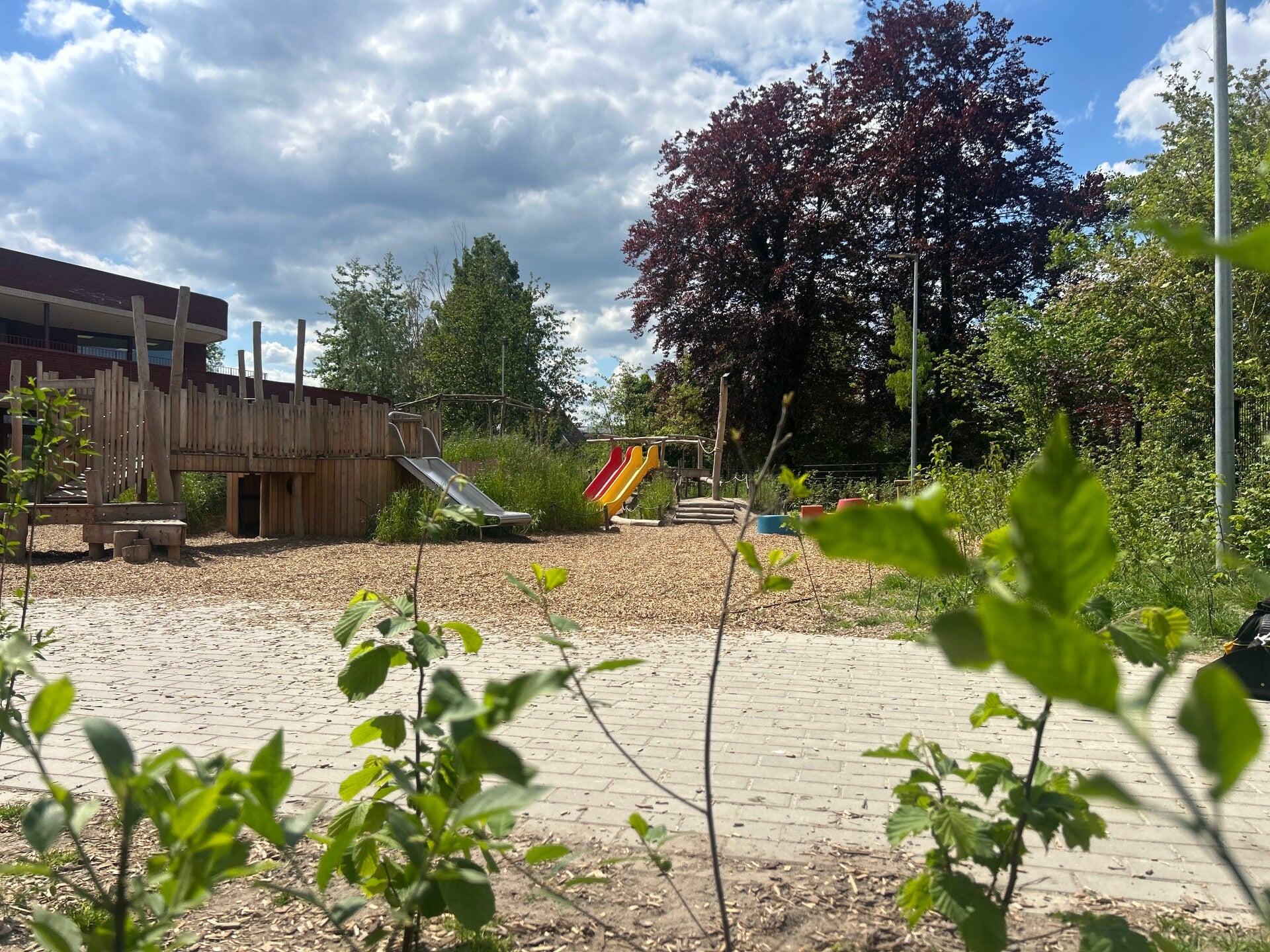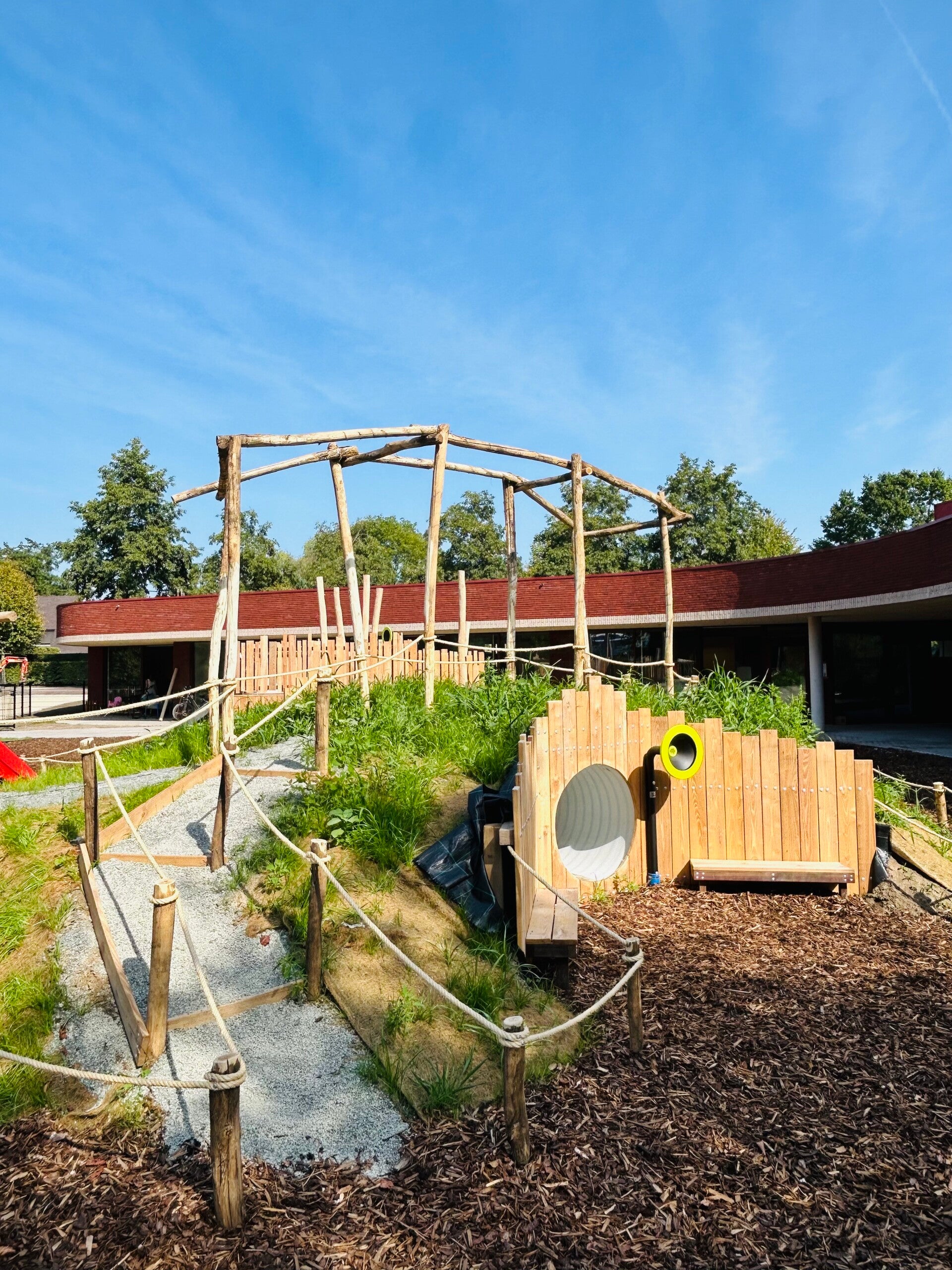 "op de nieuwe groene speelplaats kunnen onze kleuters naar hartenlust ravotten."
